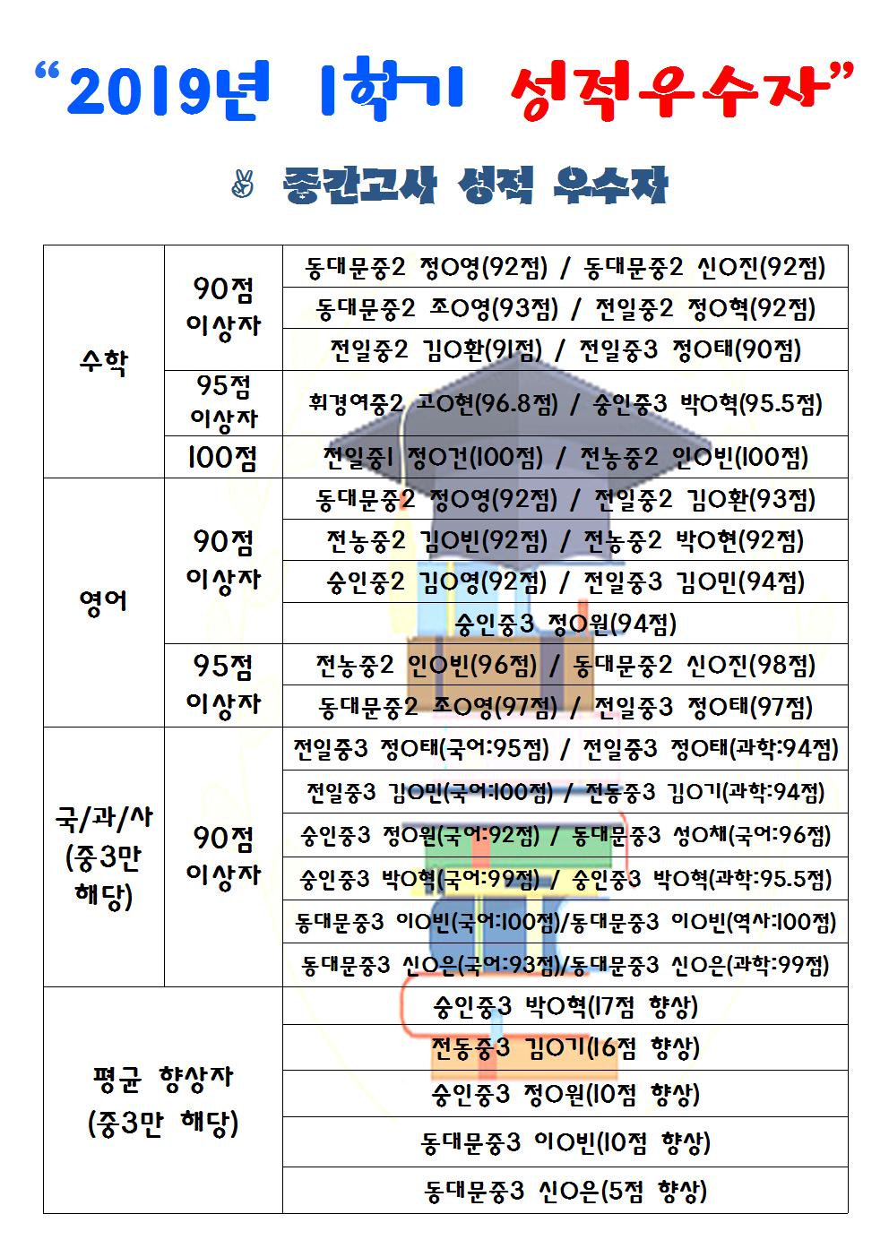 Á¦¸ñ ÁßµîºÎ 2019.1Çб⠼ºÀû ¿ì¼öÀÚ(Áß°£°í»ç)