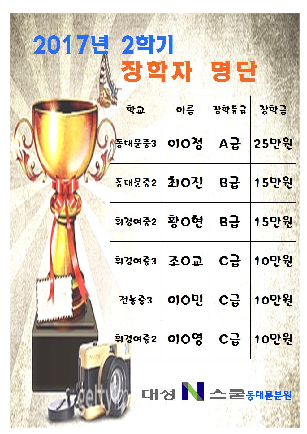 2017³â 2Çбâ ÀåÇÐÀÚ ¸í´ÜÀÔ´Ï´Ù.