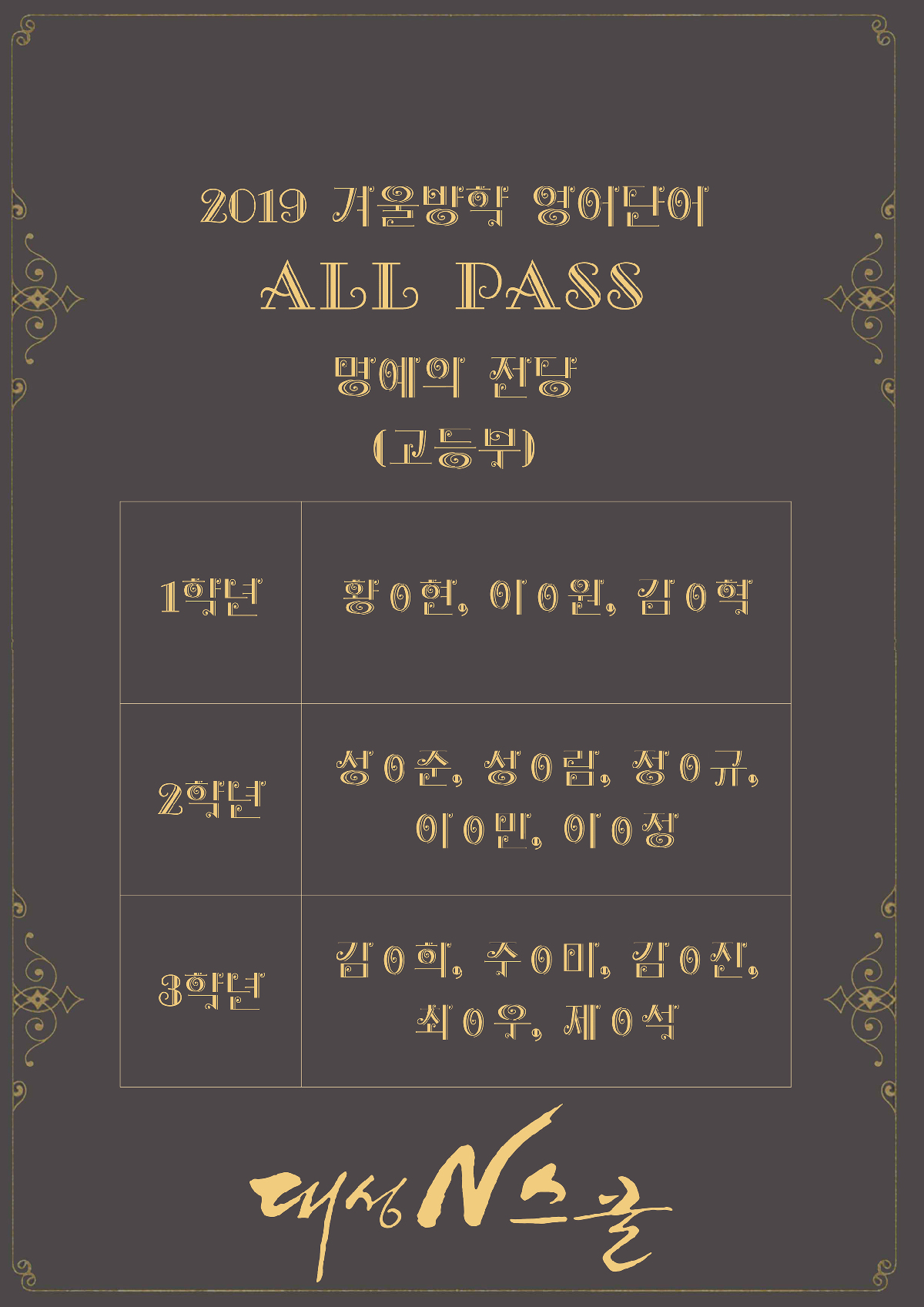 2018.12¿ù~2019.2¿ù, 3´Þ°£ ¸Åȸ ½Ç½ÃµÈ ¿µ´Ü¾î Å×½ºÆ®¸¦ ¿ÃÆÐ½ºÇÑ ÇлýµéÀÔ´Ï´Ù.